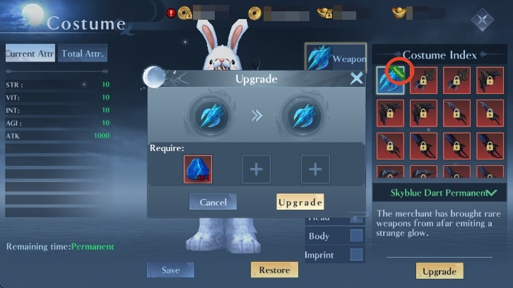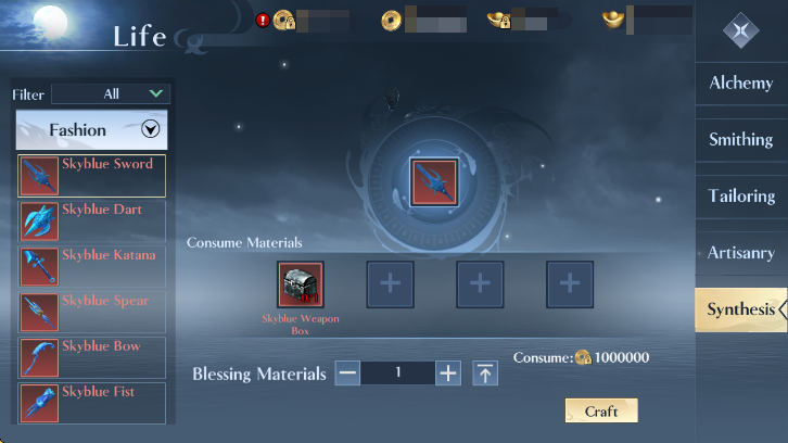 | Step 2 | Skyblue Sword + Adv Skyblue Weapon Combination Stone |