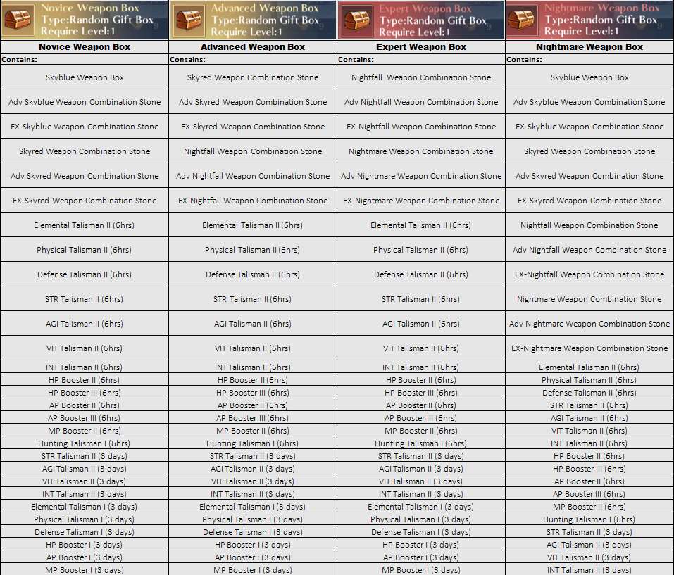 You have a chance to obtain the weapon skins and combination stone from the Mall by purchasing the following box below: