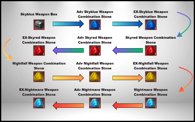 | Step 10 | EX-Nightfall Glare Sword + Nightmare Weapon Combination Stone |