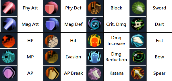 Katana, Fist, Bow, Spear: increase Physical Attack