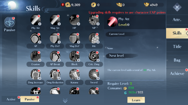 Upgrading passive skills consumes Character EXP. Please allocate your resources carefully to avoid affecting your character leveling progress.