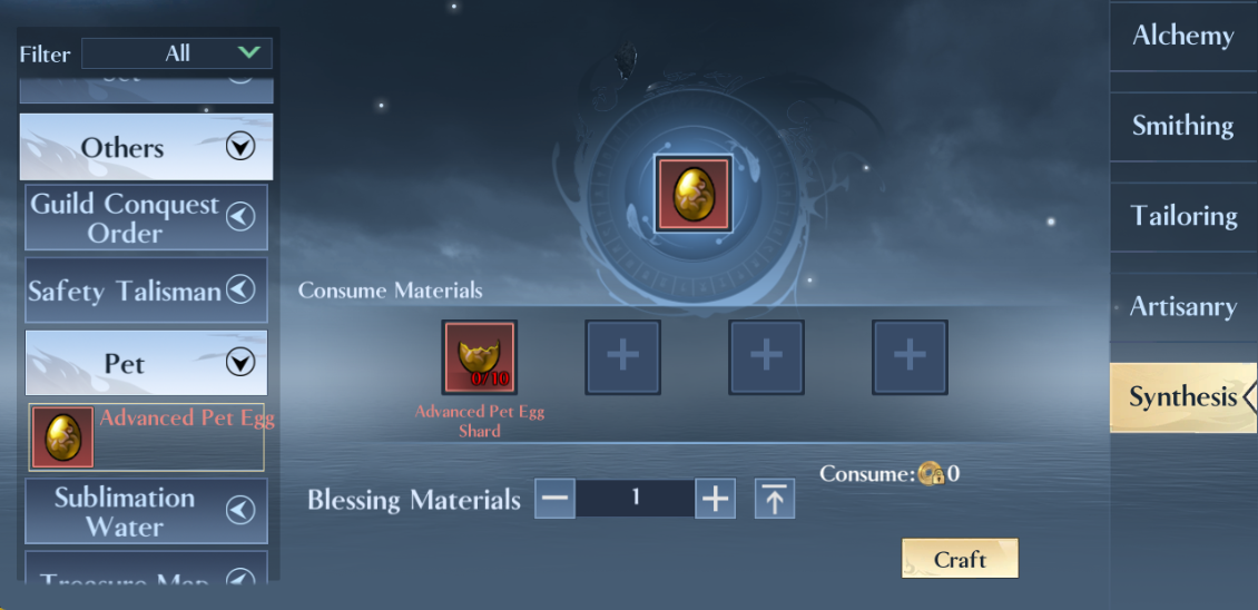 Advanced Pet Eggs can also be crafted by collecting fragments.