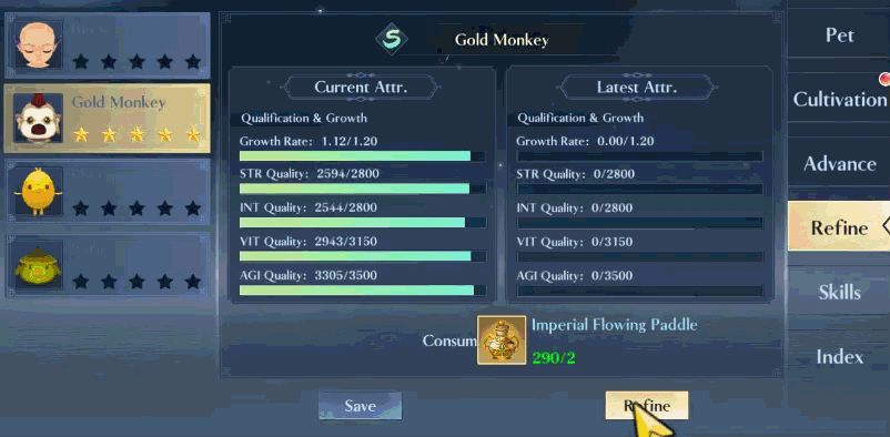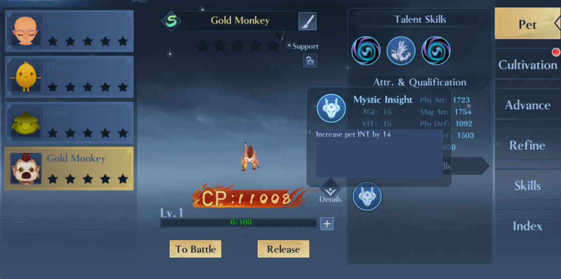 - Prioritize pets with high growth rate + suitable talents before investing resources.