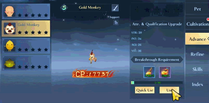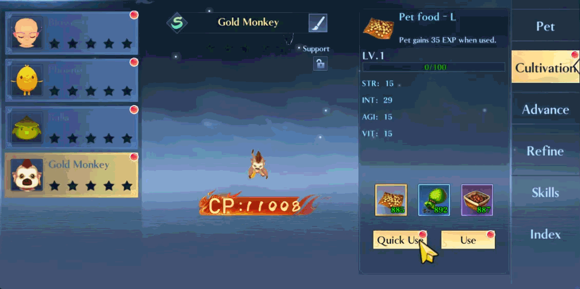 Level up pets via Cultivation