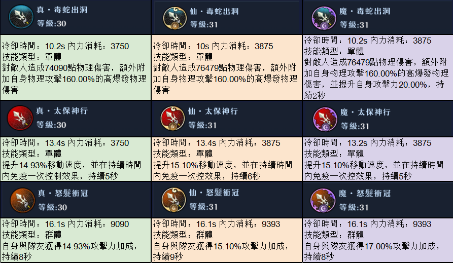 六大武器真 / 仙 / 魔 技能一覽
